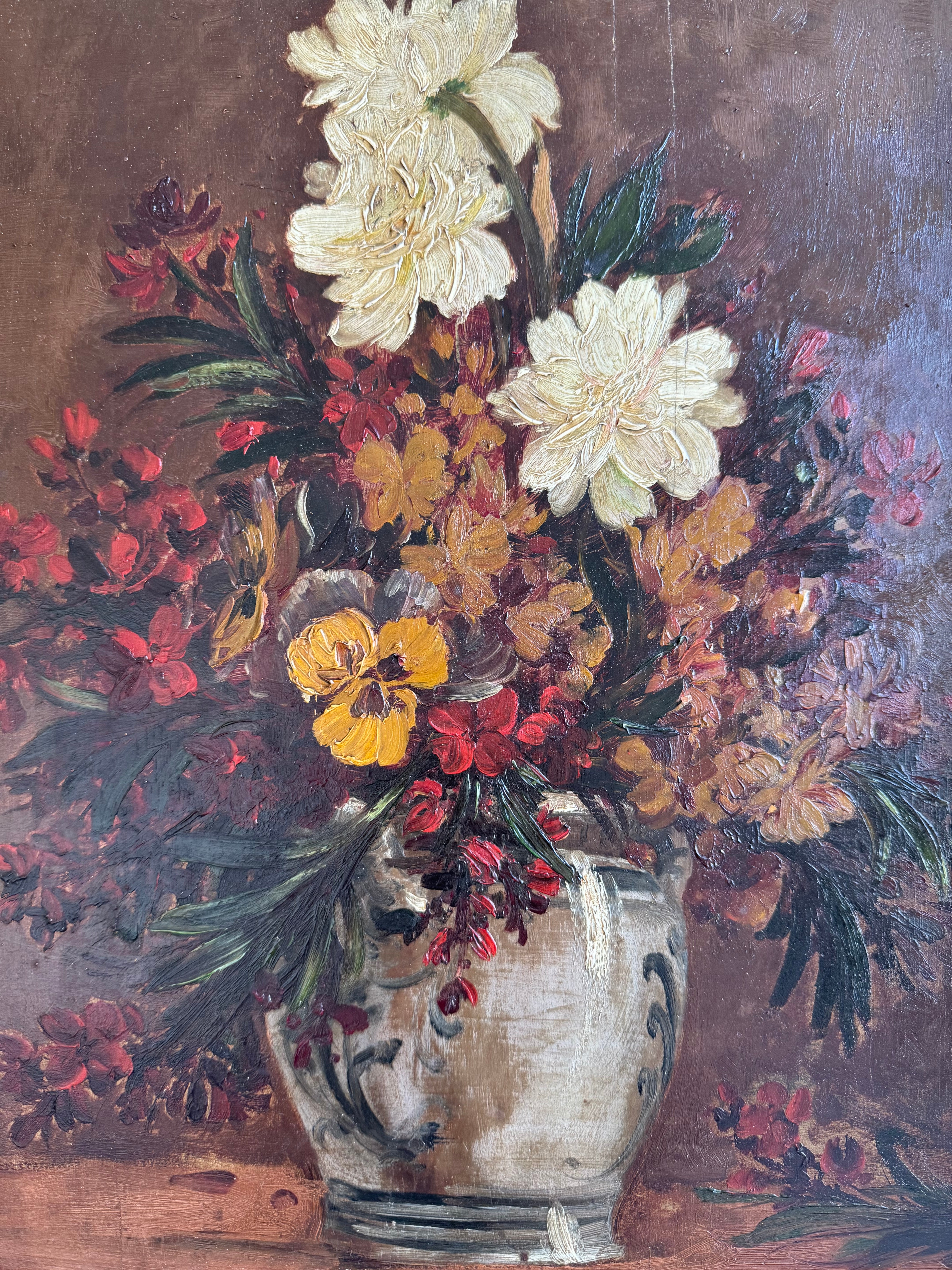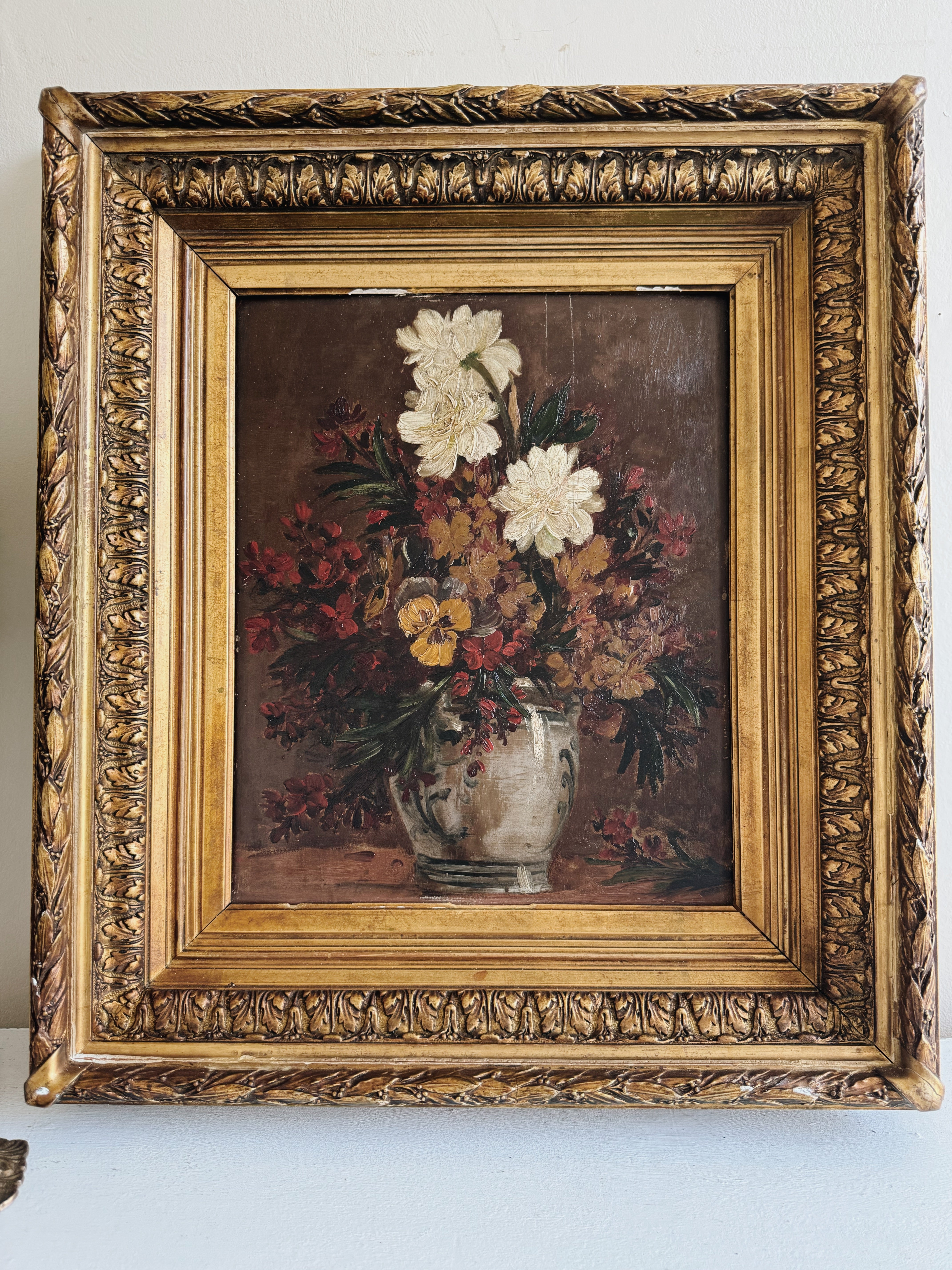 Antique Floral Oil Painting in Gilt Frame - Autumn Flowers
