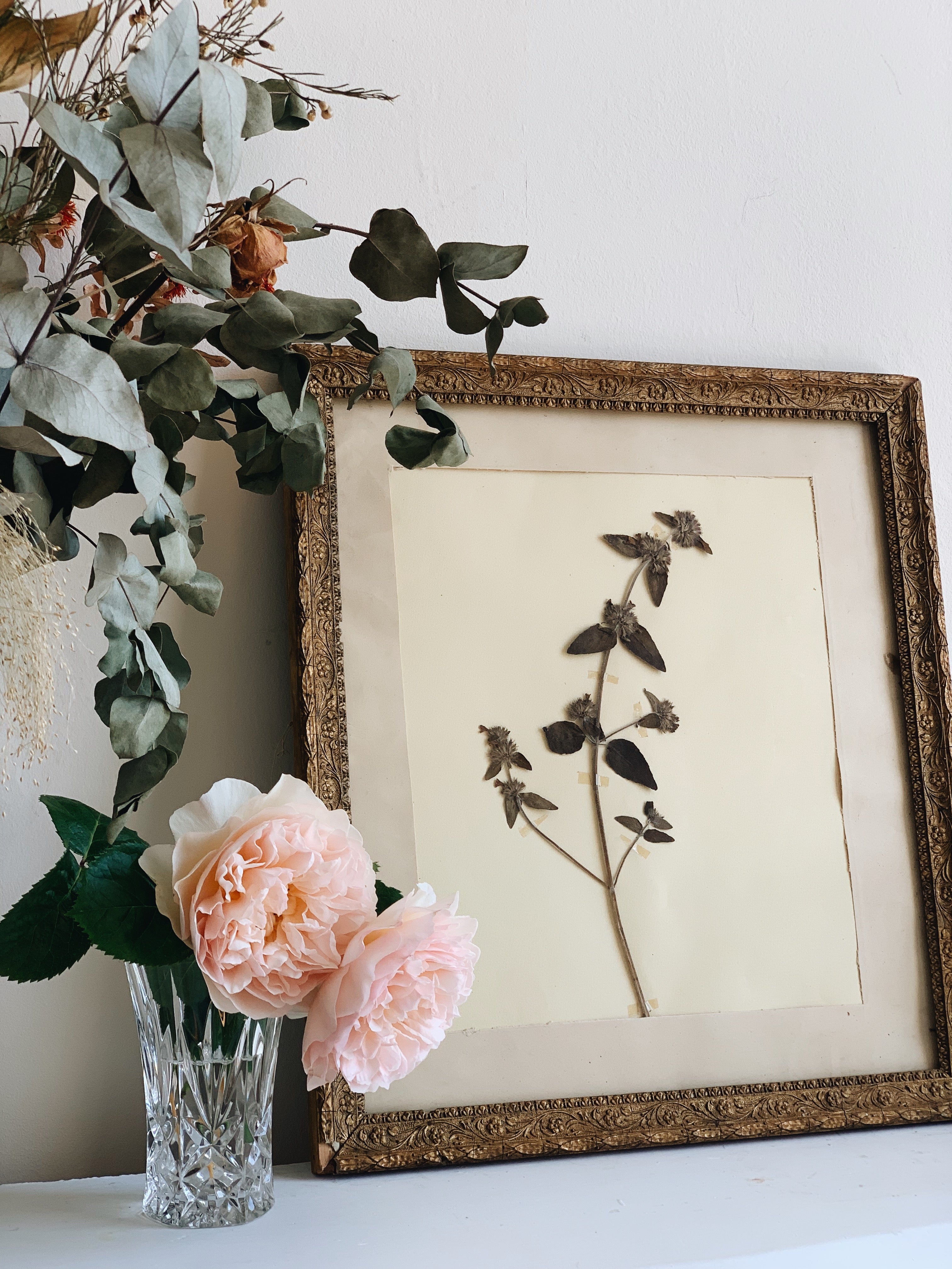A lovely example of an Antique French Herbier. The frame is 19th century, although the herbier may be slightly later. The frame has a beautifully delicate botanical design and both the frame and the herbier are in excellent condition. The herbier is framed in glass.