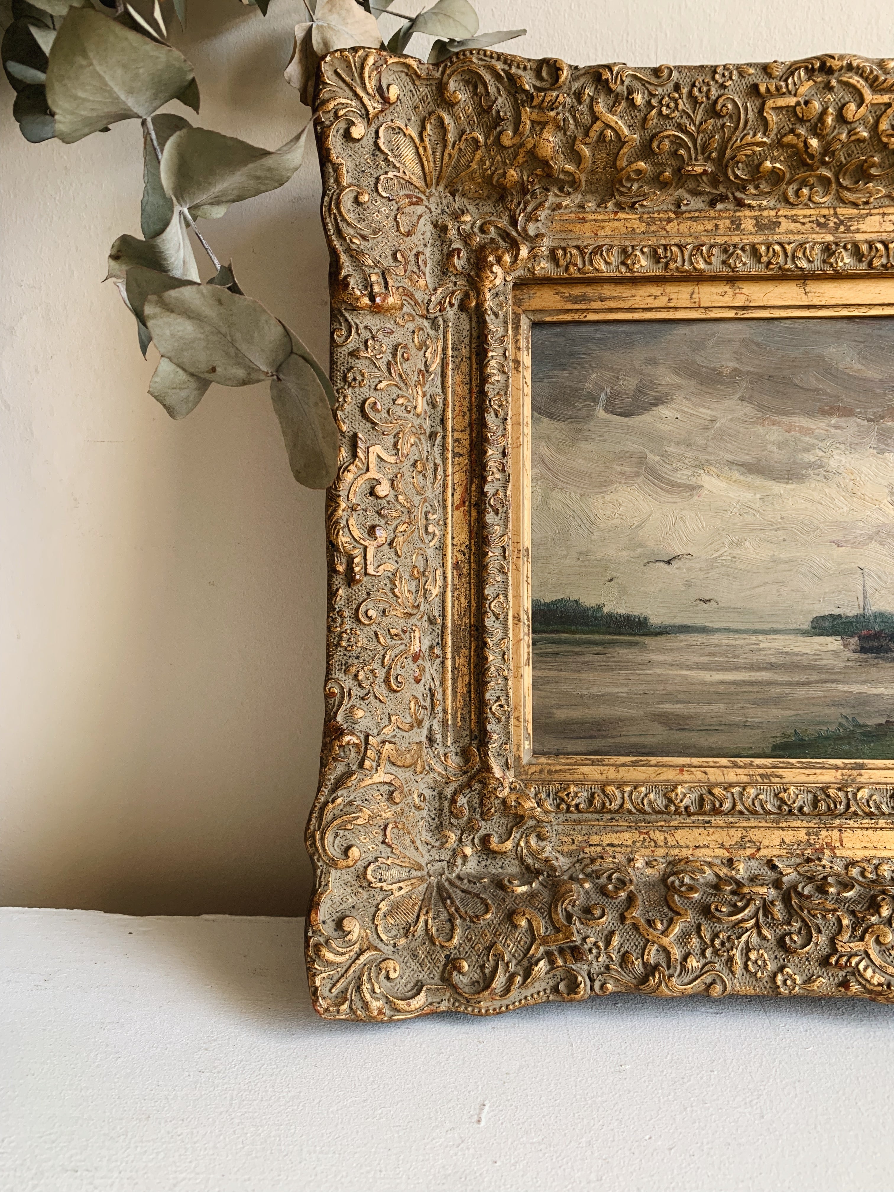 Antique Seascape Oil Painting in Ornate Gold Frame