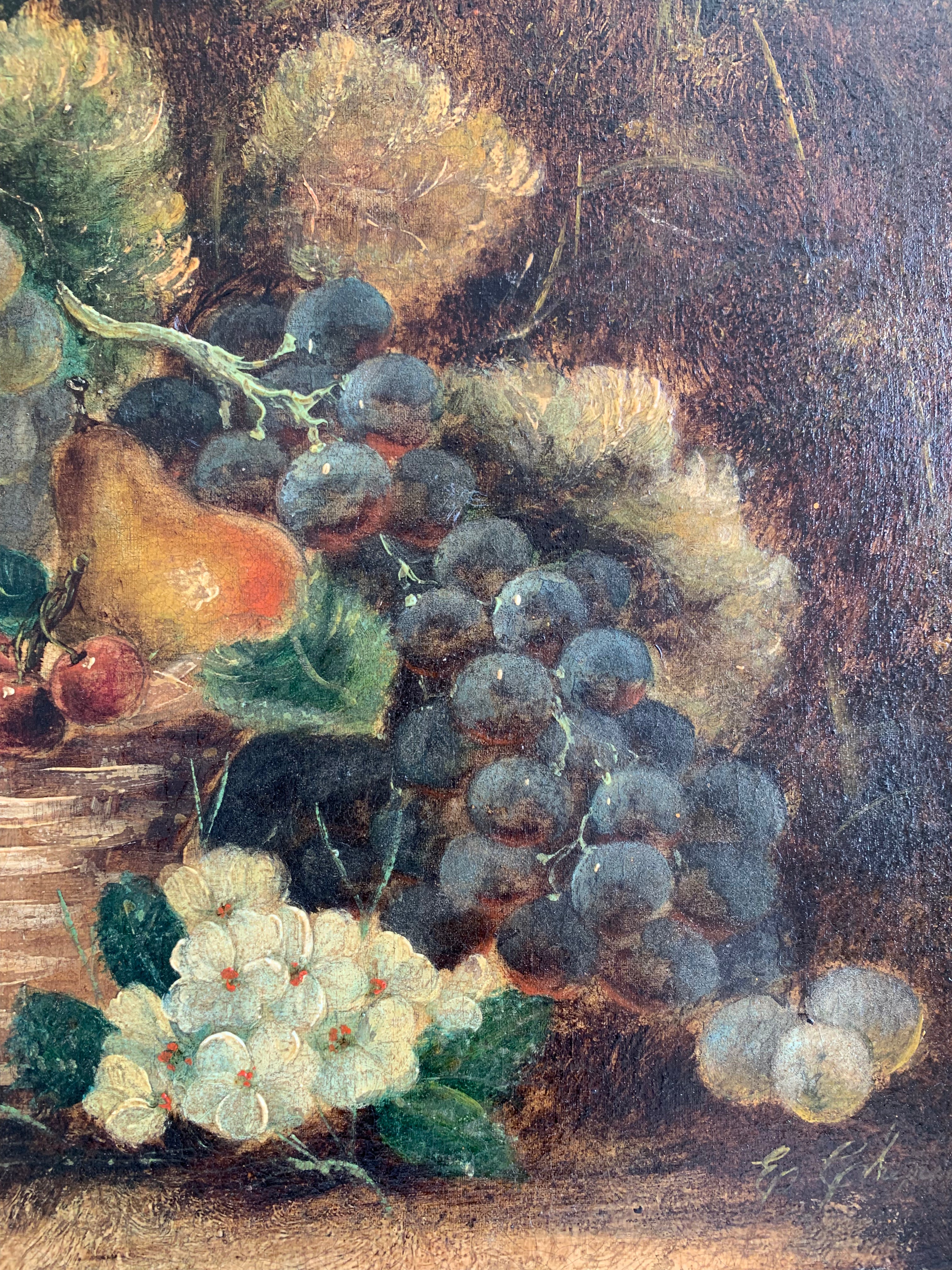 A truly stunning example of English 19th Century still life oil paintings. It's very rare to find a matching pair and in such lovely condition. This listing is for 1 of the 2 paintings, featuring the single basket.