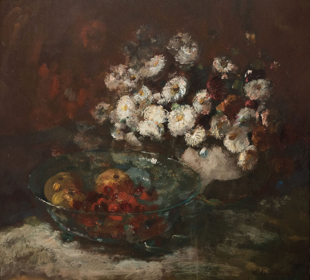 This beautiful oil painting is from around 1910 and sits within its original painted wood frame. The painting is signed indistinctly at the bottom.