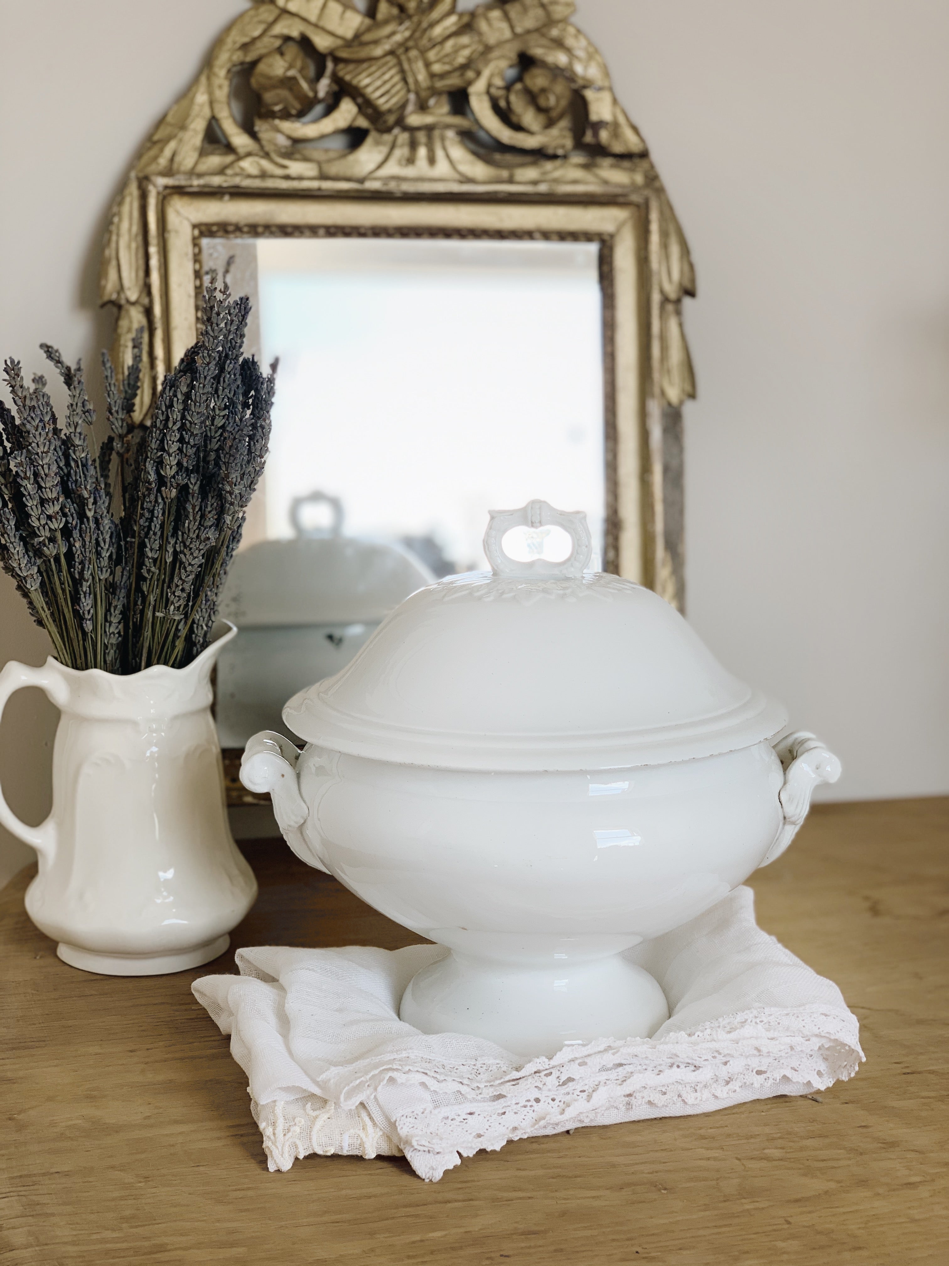 While our collection is a moveable feast, we specialise in French and European antiques. We love beautiful authentic pieces that have provenance and a story behind them. Our range includes antique gilt mirrors, chandeliers, antique art and vintage tableware. Every item is unique, interesting and always beautiful.