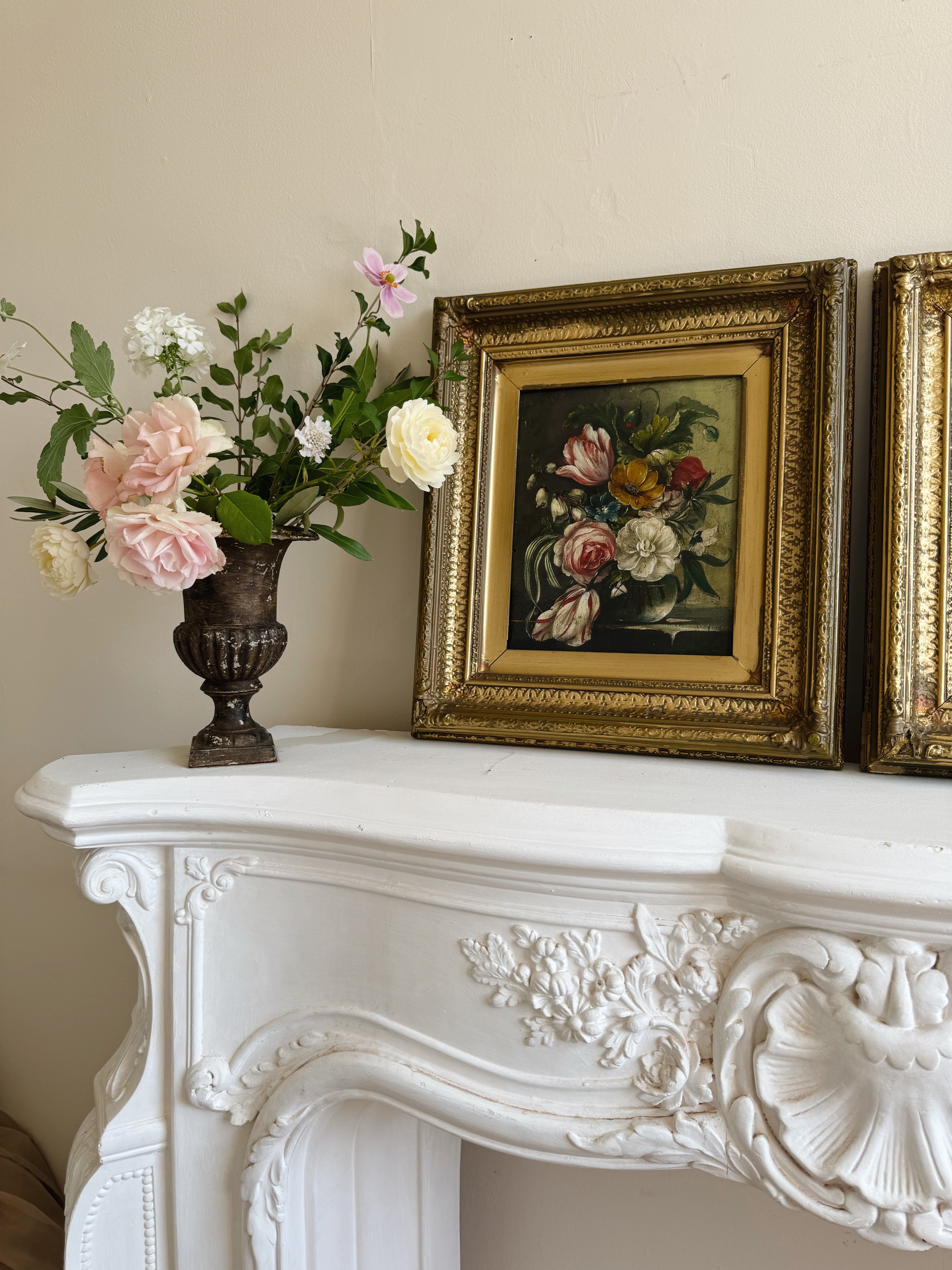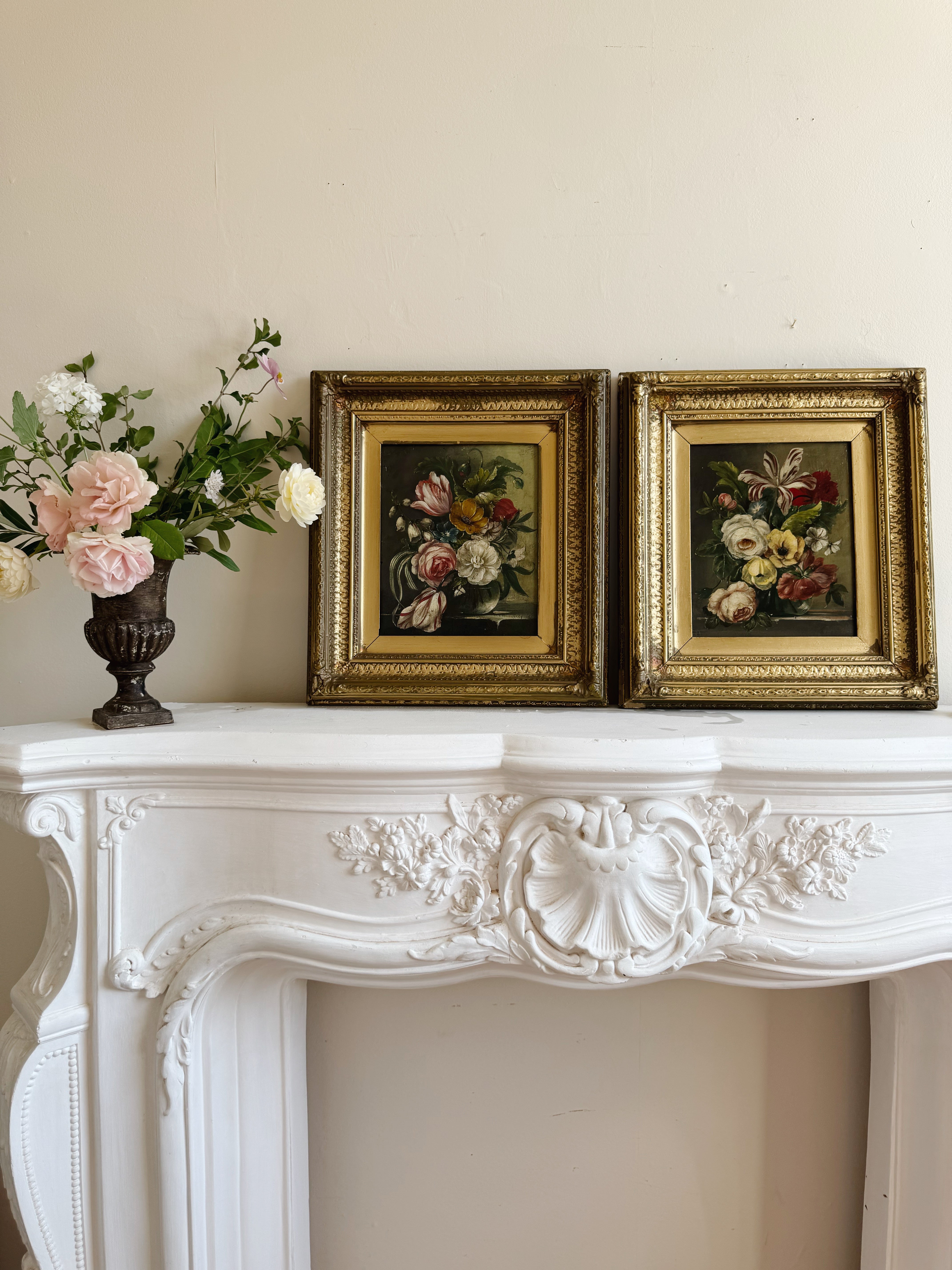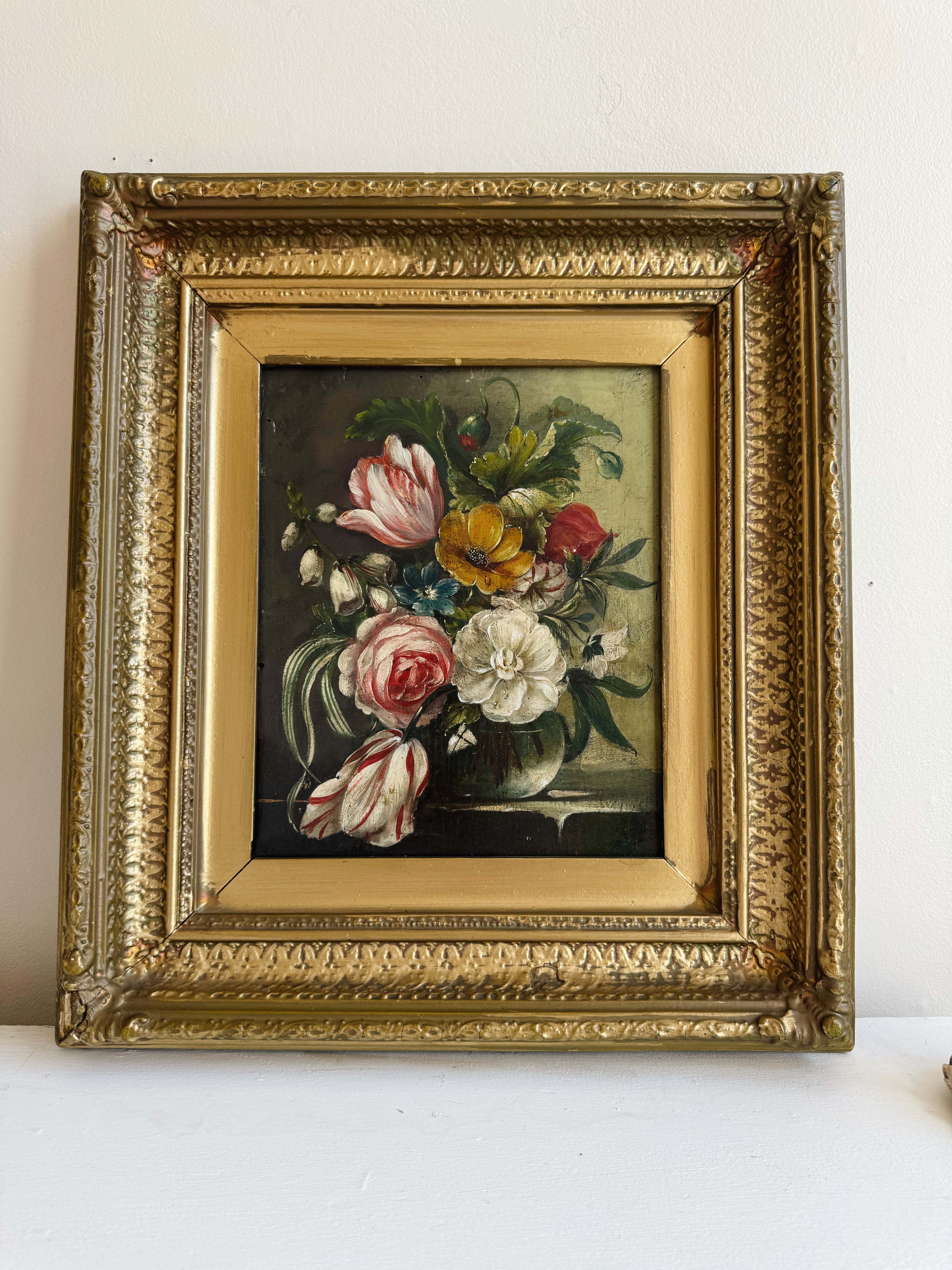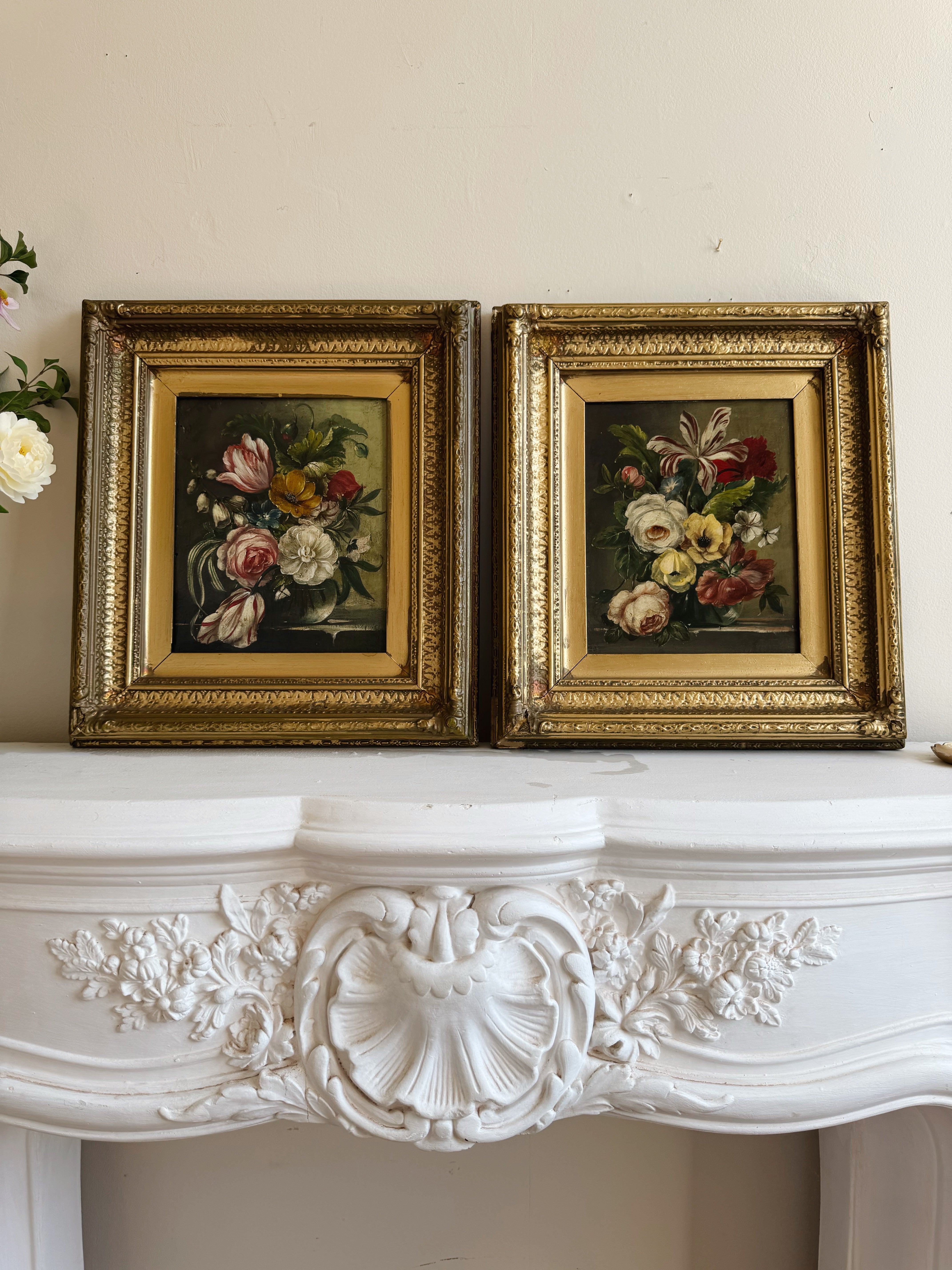 Pair of Vintage Floral Oil Paintings | Dutch Master Style Still Life in Gold Frames