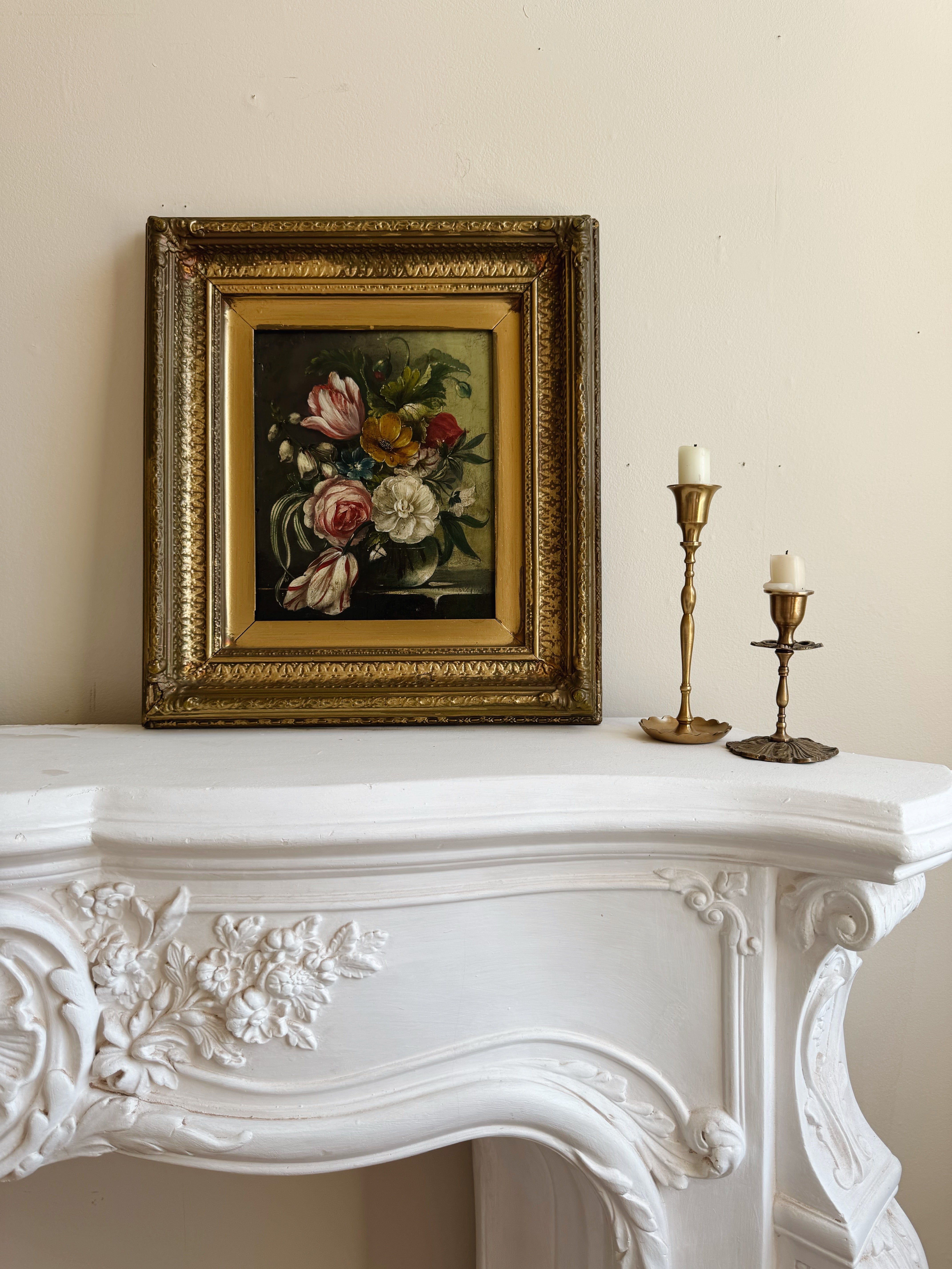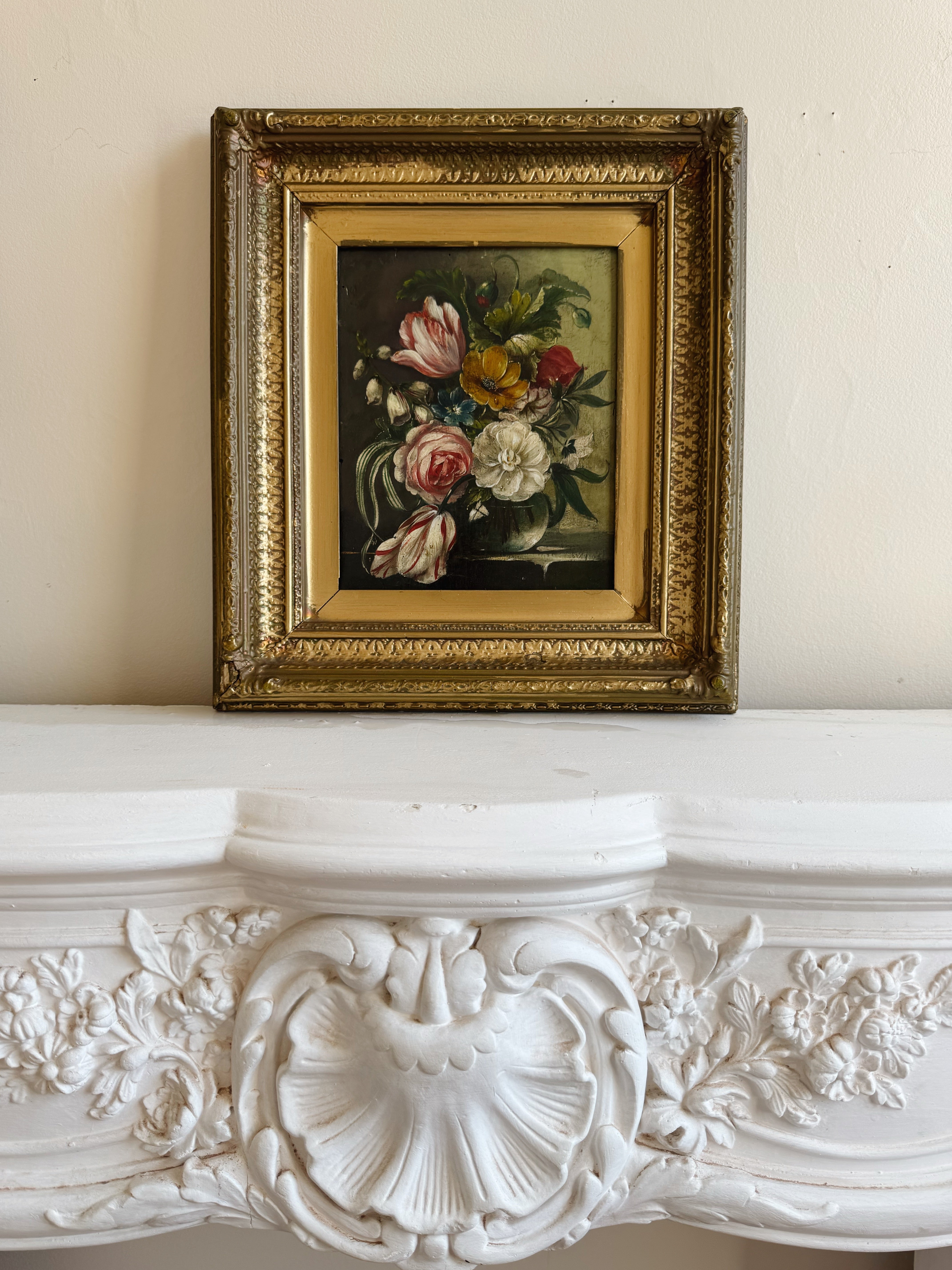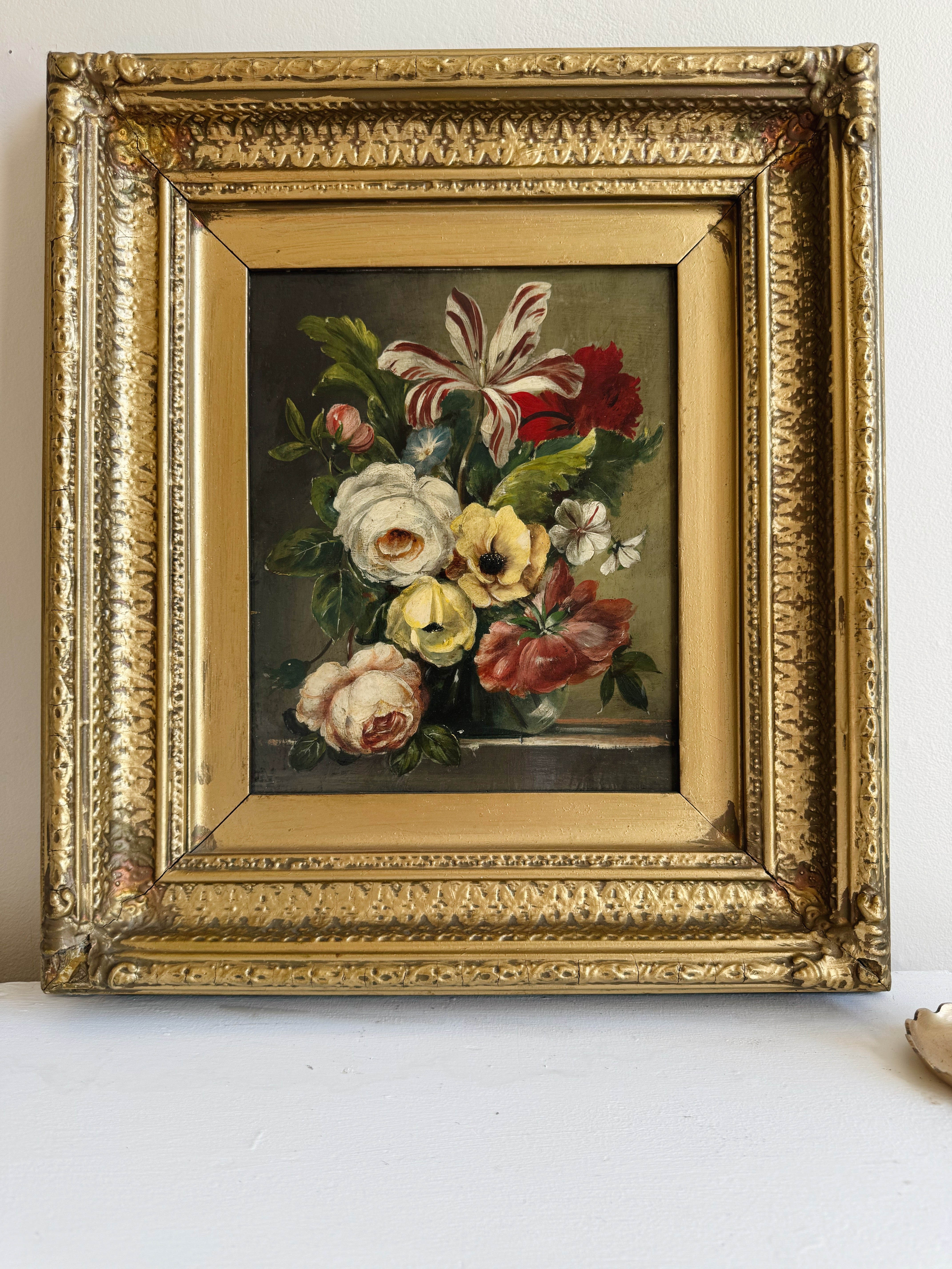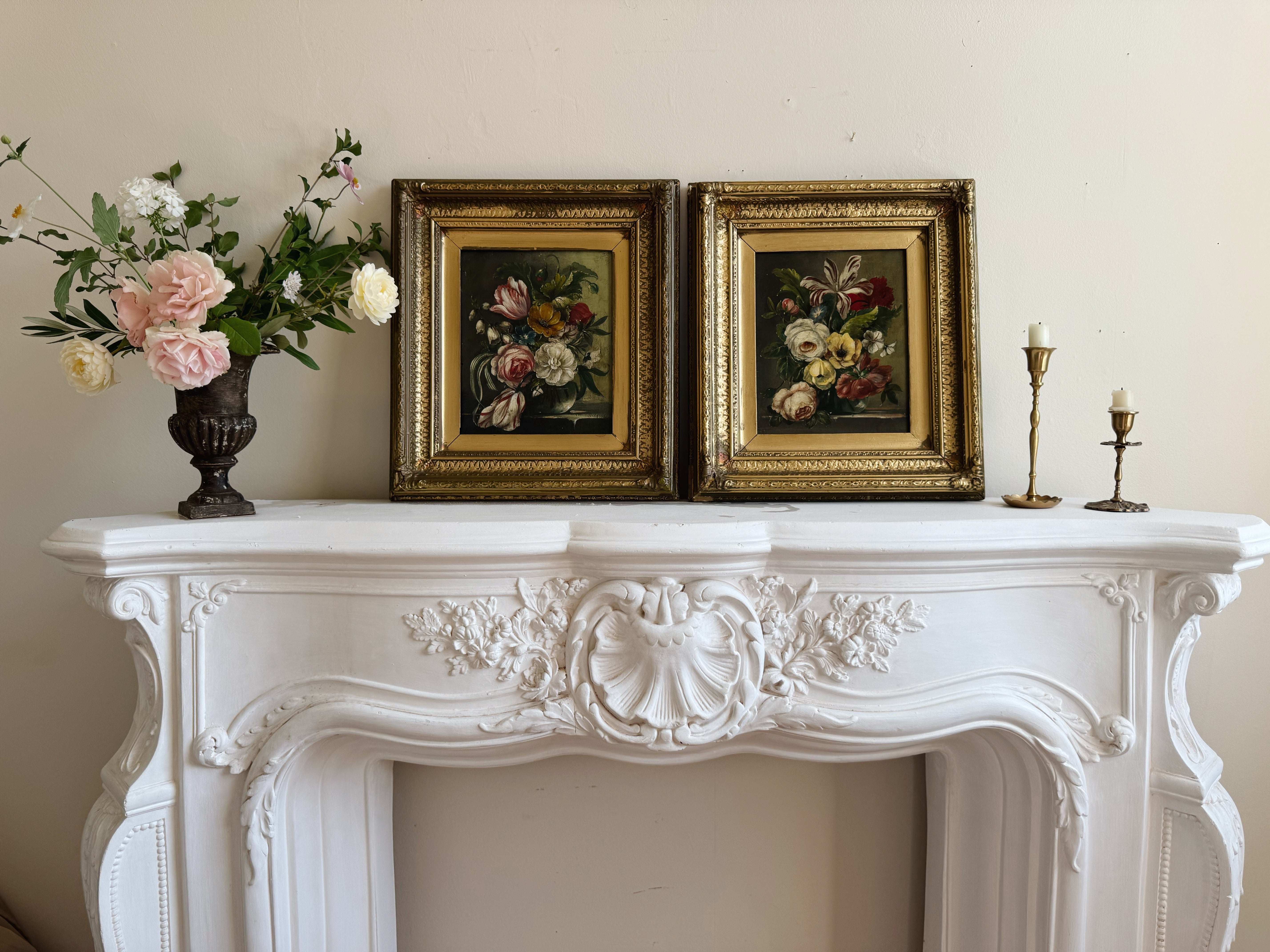 Pair of Vintage Floral Oil Paintings | Dutch Master Style Still Life in Gold Frames