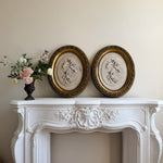 • Frames: Oval gilt frames with decorative beaded and floral moulding