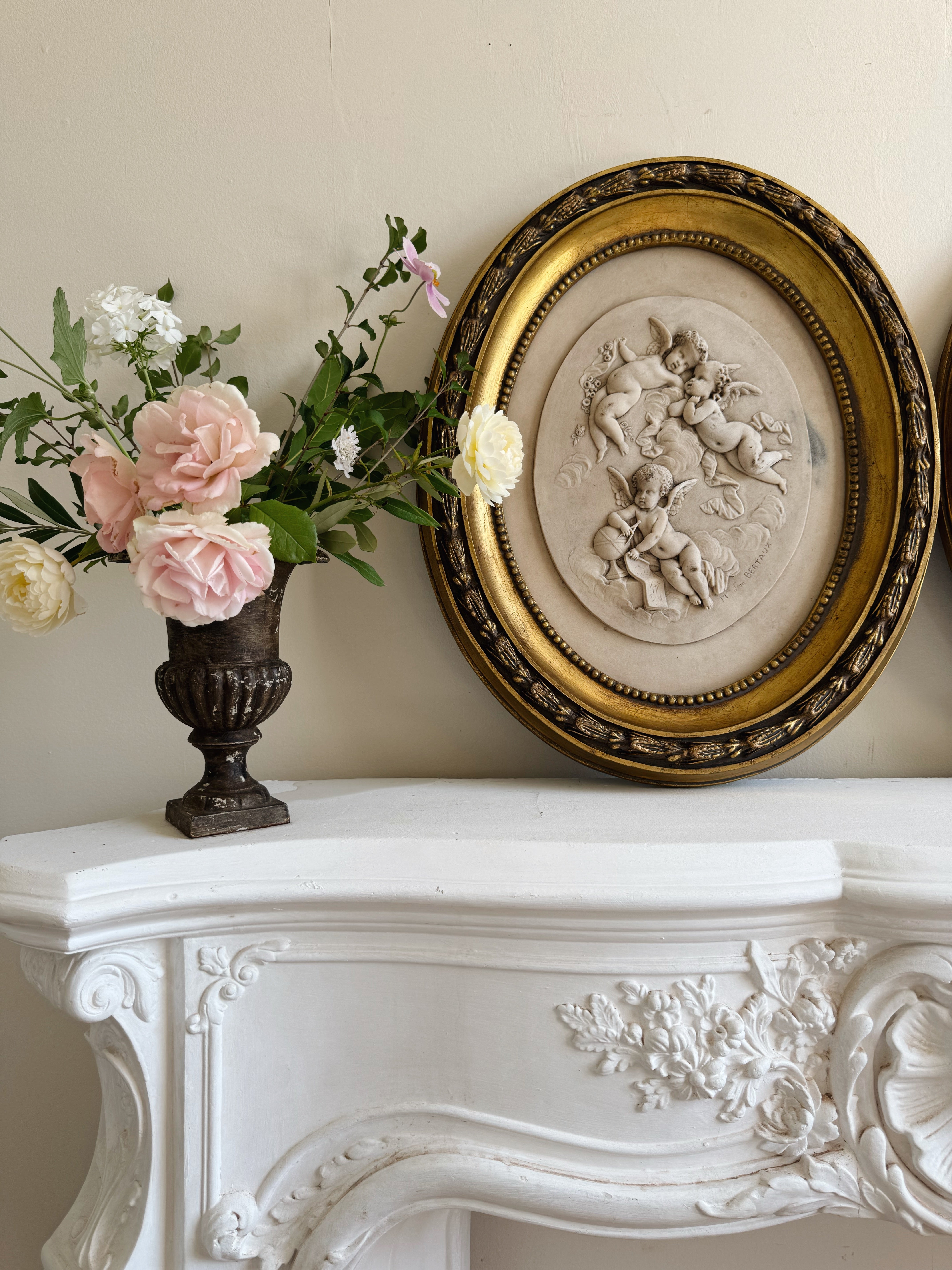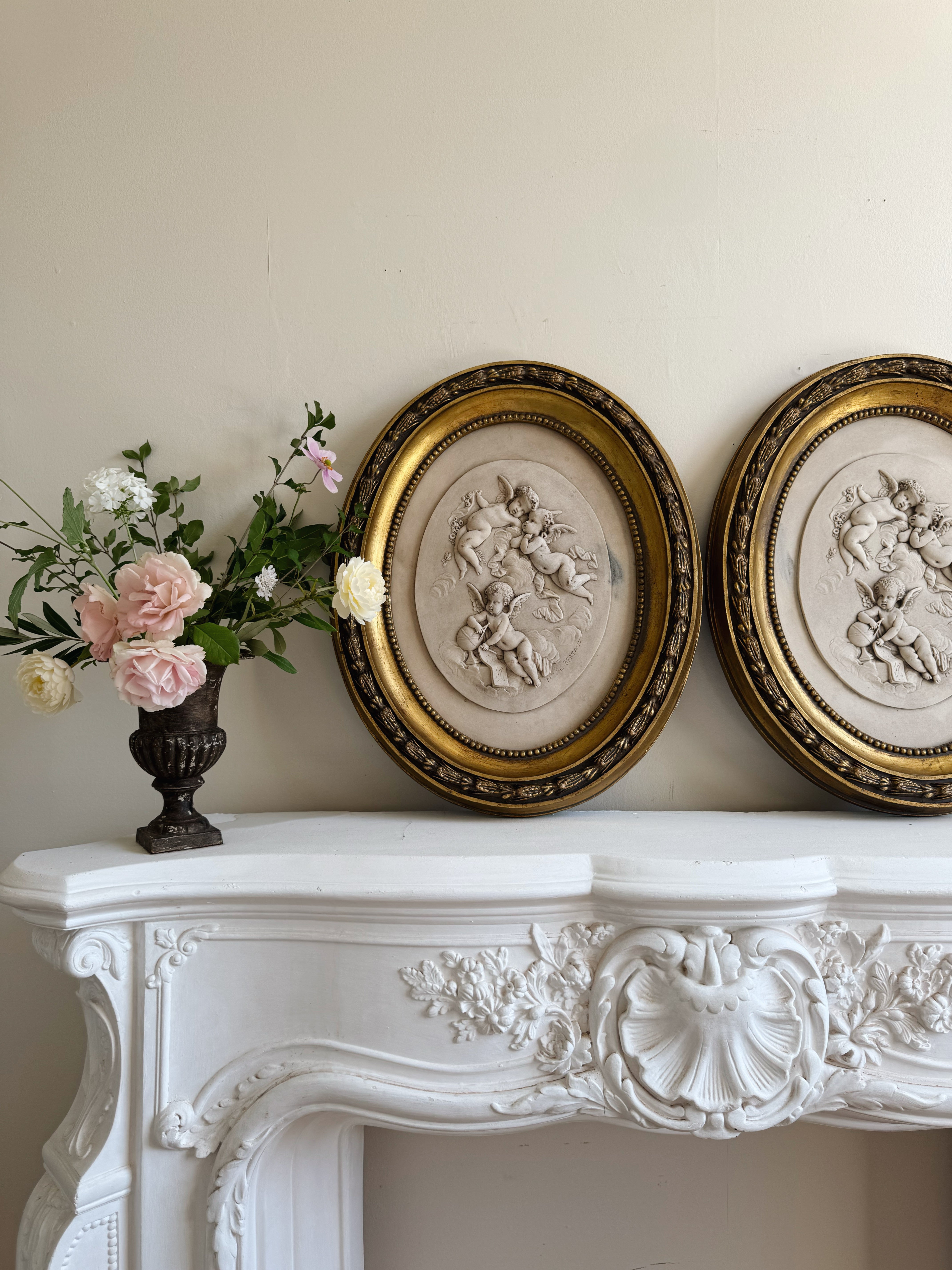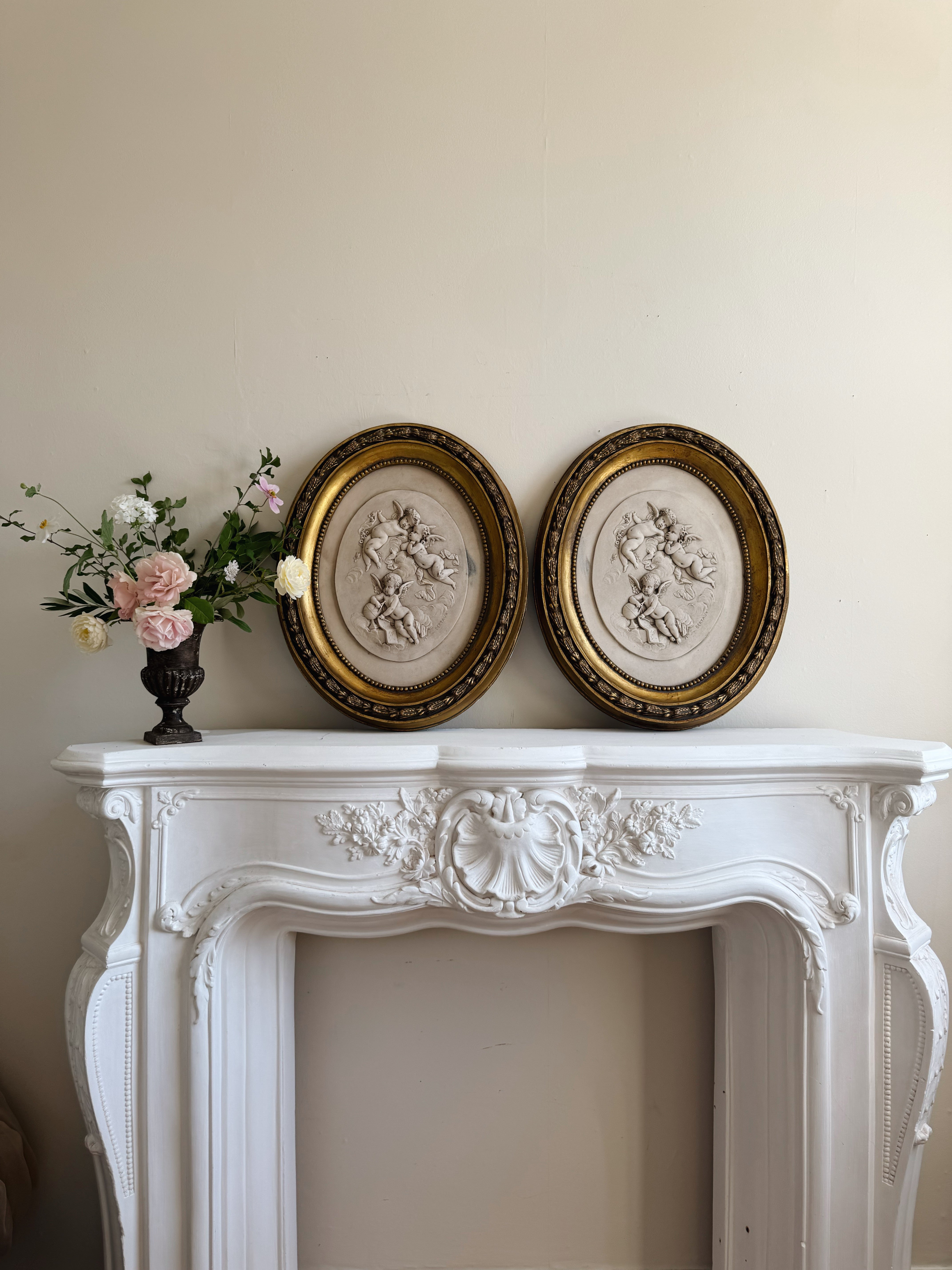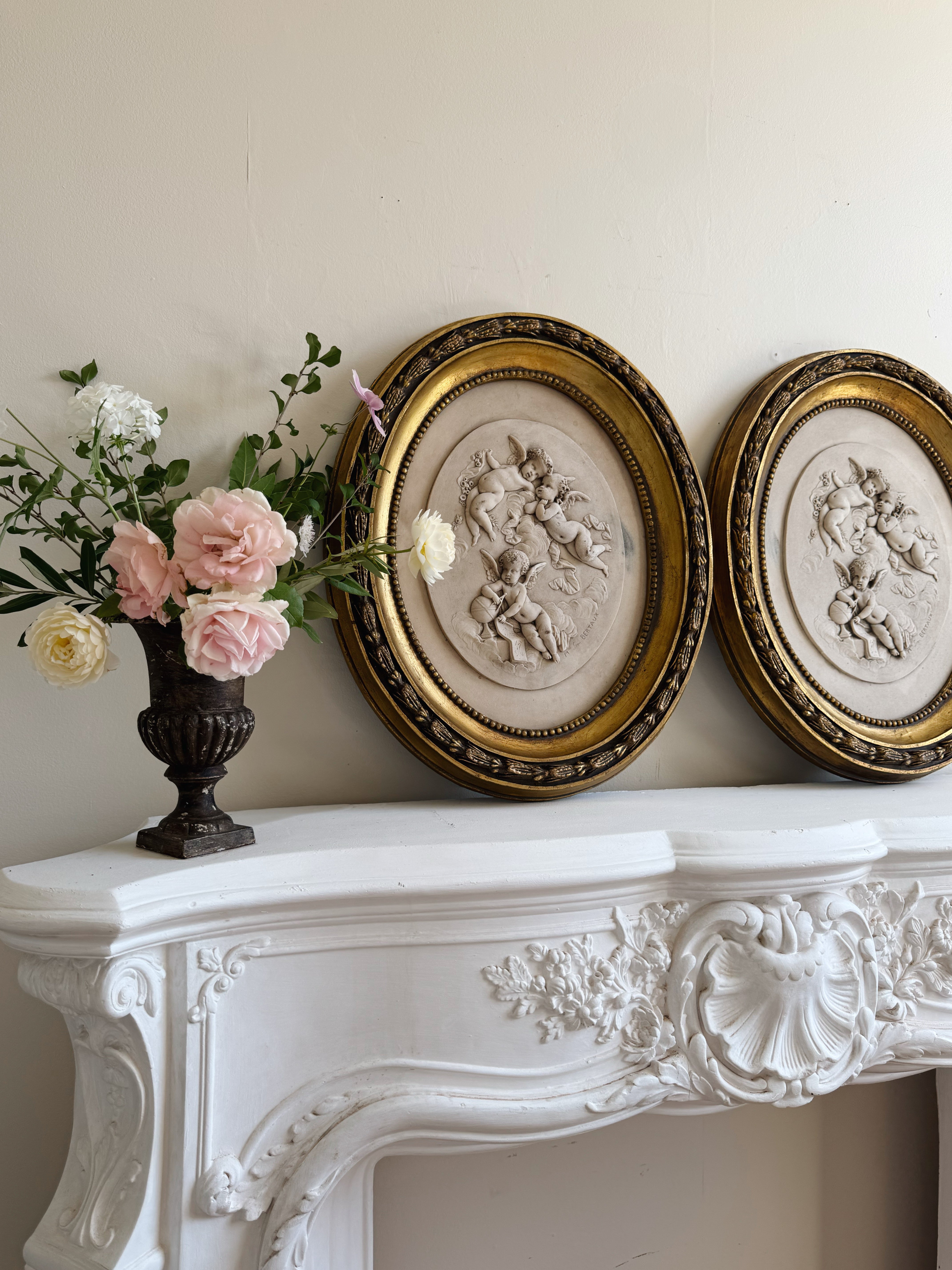 Pair of Vintage Oval Cherub Reliefs in Gilt Frame